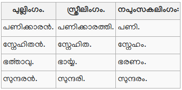 അതു രാമന്റെ പുസ്തകം. പുസ്തകം എന്ന ശബ്ദത്തിന്റെ അൎത്ഥത്തെ കാണിപ്പാനായിട്ടു അതു എന്നതിനെ പ്രയോഗിക്കുന്നതുകൊണ്ടു പുസ്തകം എന്നതു നപുംസകലിംഗമാകുന്നു.