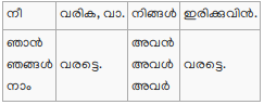 82. വിധിയിൽ മദ്ധ്യമപുരുഷൈകവചനത്തിൽ ക്രിയാ പ്രകൃതി മതി. ബഹുവചനത്തിൽ ഇൻ പ്രത്യയം വരും. ഉത്തമപ്രഥമപുരുഷന്മാരിൽ ട്ടെ എന്ന പ്രത്യയം ചെൎക്കും.