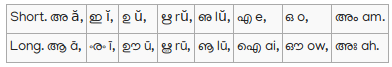 5. The Malayalim letters are 53 in number: of these 16 are vowels, distinguished thus,