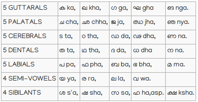 4. With the exception of three characters, the whole Malayalim Alphabet is taken from the Sanscrit; it is, in fact, the Sanscrit Alphabet, written in the Malayalim character but retaining the same order, power, and nearly the same sound as the Dēva-nāgari as used by the Brahmins of the present time. THE ALPHABET