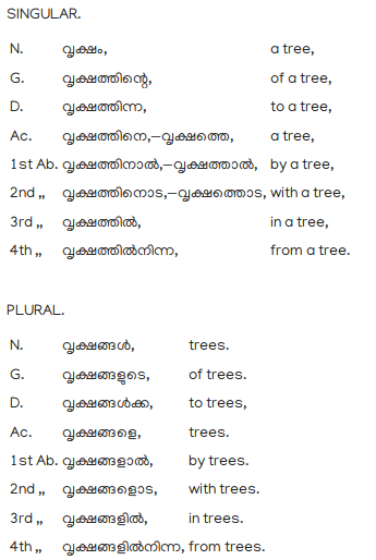 Paradigm of nouns ending in ം.