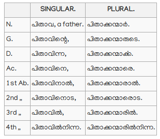 Nouns of this declension, whose nominative end in റ, or ട, double these letters in most of the oblique cases singular; as,