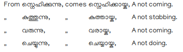 4th. Negative nouns, of the above description, are formed by dropping ഉന്നു of the present indicative, and adding ആയ്ക്ക, or ആയ്ക; as,