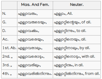 78. എല്ലാം, All is neuter gender; but by removing the last letter and affixing അവരും, it becomes Masculine and Feminine; as,