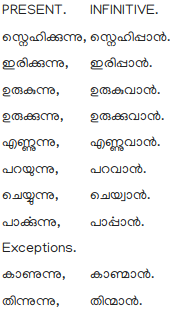 113. The rules, for the formation of this mood, are the same as those given for the formation of the second person plural of the imperative; except that instead of adding പ്പിൻ or വിൻ; പ്പാൻ or വാൻ must be written; as,