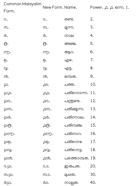 given; the first being the Common Malayalim form; the second a form introduced by Europeans.