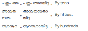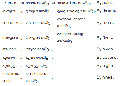 135. Adverbs of order are formed by adding ആമത to the Cardinal numbers; as,