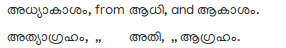 In many words, chiefly of Sanscrit origin, when the word to be prefixed ends in ം, that character is dropped altogether; thus,