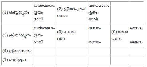 (i) അപൂൎണ്ണക്രിയകളെ താഴേ പട്ടികയിൽ ചേൎത്തിരിക്കുന്നു.