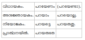 127. ഒൽധാതുവിൽനിന്നുണ്ടായ ഒല്ല എന്നതും അരുധാതുവിൽനിന്നുണ്ടായ അരുതു എന്നതും വിധായകം മുതലായ പ്രകാരങ്ങളുടെ നിഷേധരൂപങ്ങളെ ഉണ്ടാക്കുവാൻ ഉപയോഗിക്കും.
