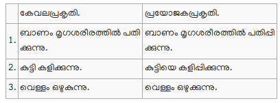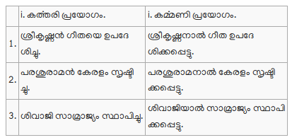 (ii) ആഖ്യ എല്ലായ്പോഴും പ്രഥമവിഭക്തിയിൽ ഇരിക്കും. കൎത്താവു കൎത്തരിപ്രയോഗത്തിൽ പ്രഥമയിലും കൎമ്മണിപ്രയോഗത്തിൽ തൃതീയയിലും വരും.