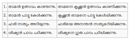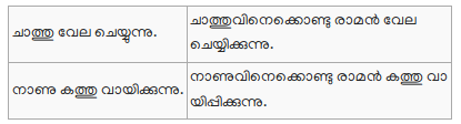(iii) ത്തു ചേൎത്തുണ്ടാക്കും. ഇരുത്തുക, കിടത്തുക, നിറുത്തുക, വളരുക–വളൎത്തുക, വീഴ്ത്തുക, കമിഴ്ത്തുക.